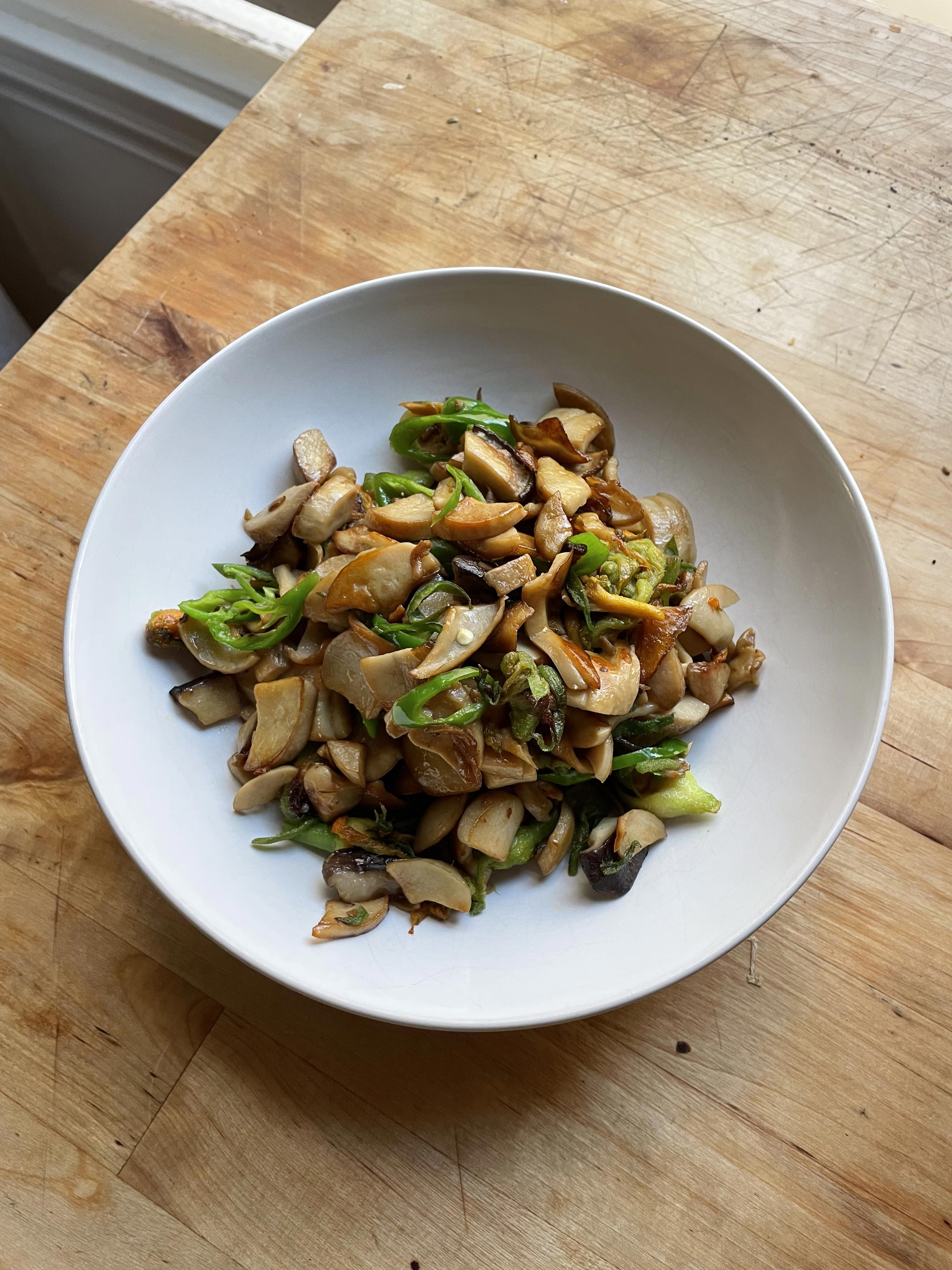King Oyster Mushroom and Squash Blossom Stir Fry